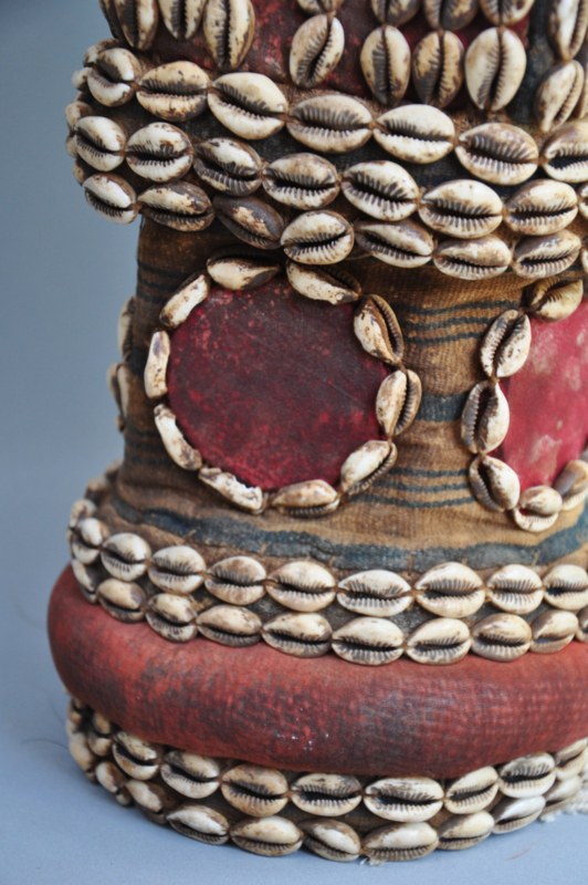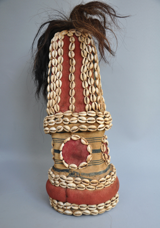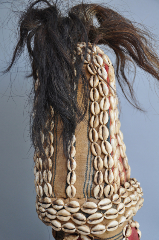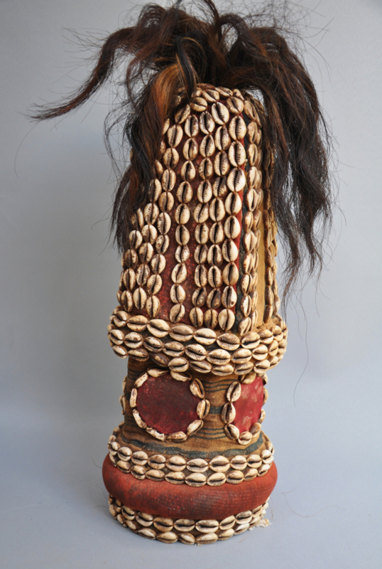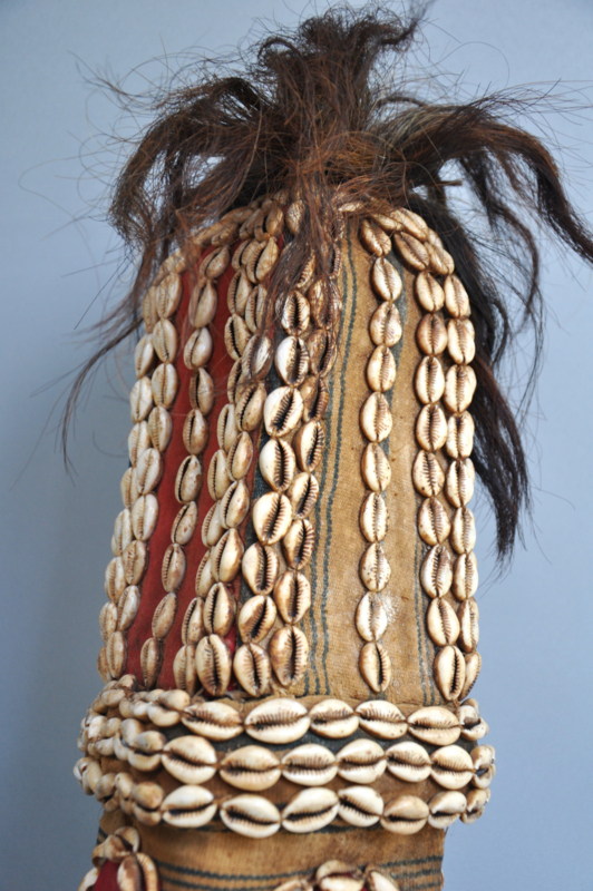Materialen: Kauri schelpen, natuurlijke vezels, geitenhaar, pigmenten