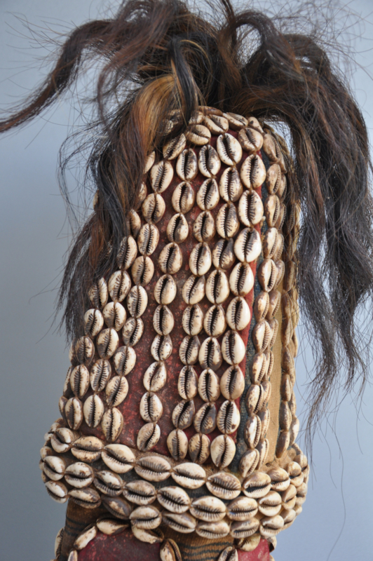OverzichtZeldzaam Afrikaans hoofdmasker met kauri schelpen
