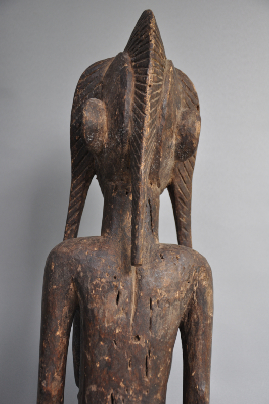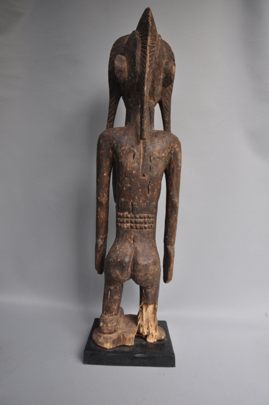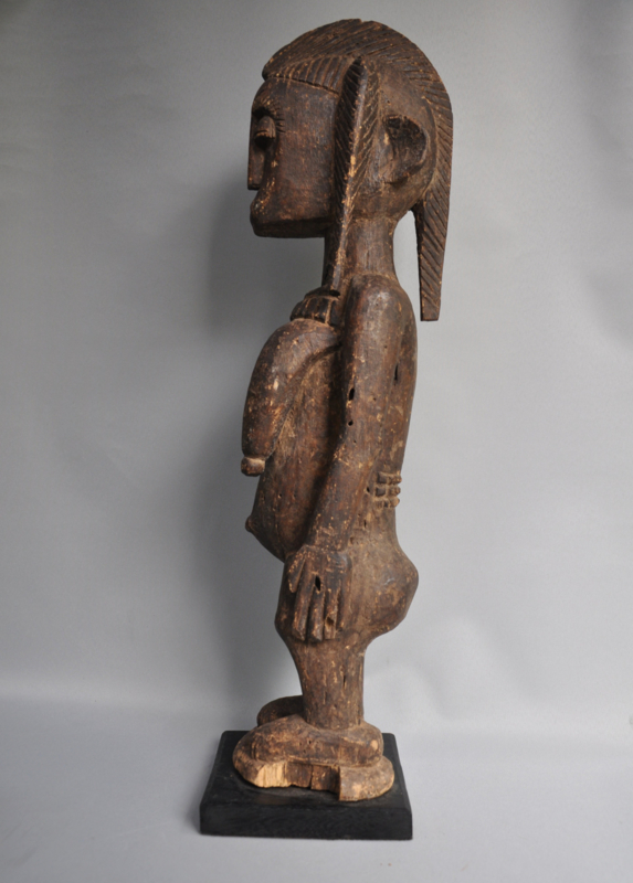 In de Baule-traditie dienen dergelijke beelden als verblijfplaats voor de geest van een voorouder of een natuurgeest (Asie Usu). Ze spelen een cruciale rol in spirituele rituelen, waar ze worden gebruikt om contact te maken met de geestenwereld. Het beeld wordt liefdevol verzorgd, gereinigd en geofferd om de gunst en bescherming van de geesten te verkrijgen. Dit specifieke beeld is een uniek verzamelobject, dat de diepe spirituele en artistieke tradities van de Baule weerspiegelt. Met de forse afmeting is het ook een opvallende interieur decoratie.